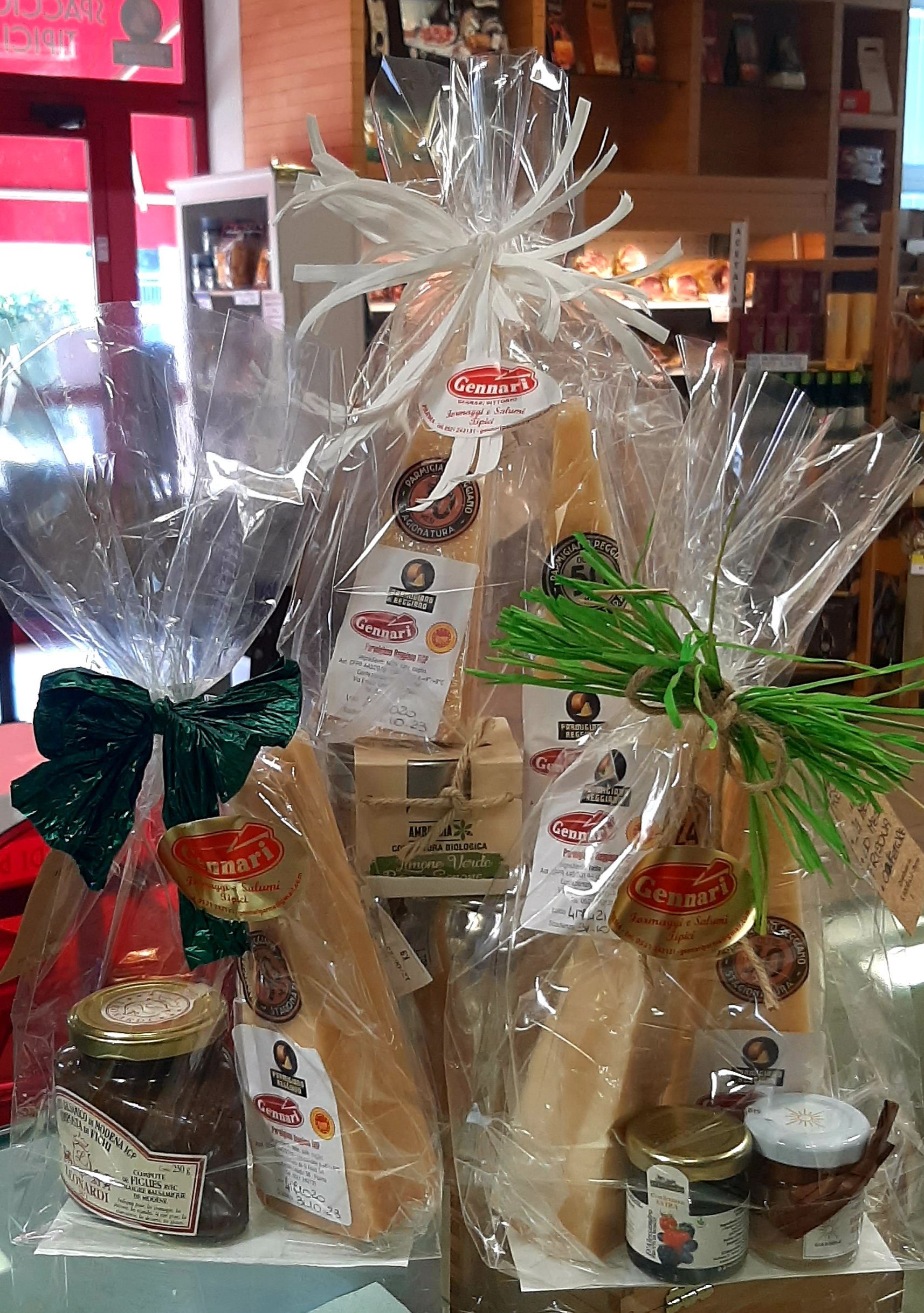 Presso il nostro negozio ci occupiamo del confezionamento di cesti alimentari regalo con i migliori prodotti della tradizione emiliana come formaggi, salumi in trancio, marmellate, conserve, vini e tanto altro.